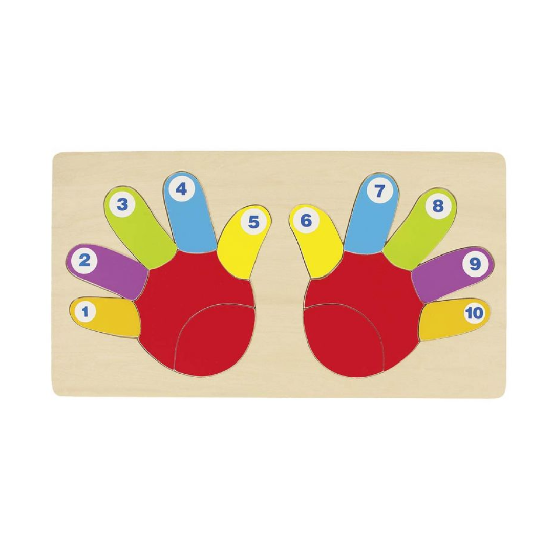 Puzzle din lemn cu număratul degetelor, Goki - Jucărie Specială
